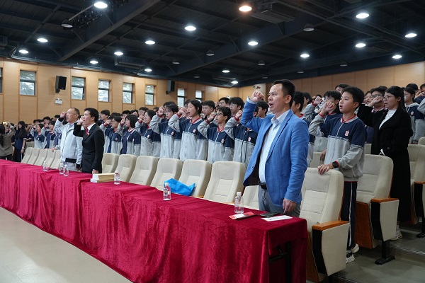 活动中,彭赟副庭长采用有奖知识问答的形式,通过提问如“哪些行为属于校园欺凌?”“遭受校园欺凌时如何保护自己?”“作为旁观者应该怎么做?”等问题,让同学们对法律知识和预防措施有更深刻的理解,同学们踊跃举手,现场气氛热烈。 “我承诺,不当残忍的欺凌者!不当沉默的受害者!不当冷酷的旁观者!”活动最后,彭赟副庭长带领全体师生宣读《远离校园欺凌承诺书》,进行了庄严宣誓,切实帮助同学们强化责任担当意识,从思想上树立防线,从行为上明确边界,将法律知识有效转化为行为准则。