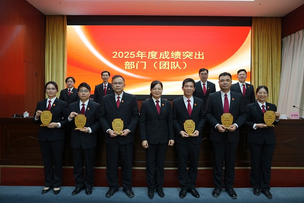 党组成员、政治部(督察室)主任苏锦杨宣读了《关于对2025年度成绩突出集体、个人和岗位能手给予通报表扬的决定》我院班子成员依次为获得表彰的集体和个人颁发荣誉奖牌及证书,希望全院干警对标先进、向榜样看齐,共同推动法院工作再上新台阶。  【立案庭(诉讼服务中心)、行政审判团队、刑事审判团队、政治部(督察室)、综合办公室、审管团队获评2025年度成绩突出部门(团队)】